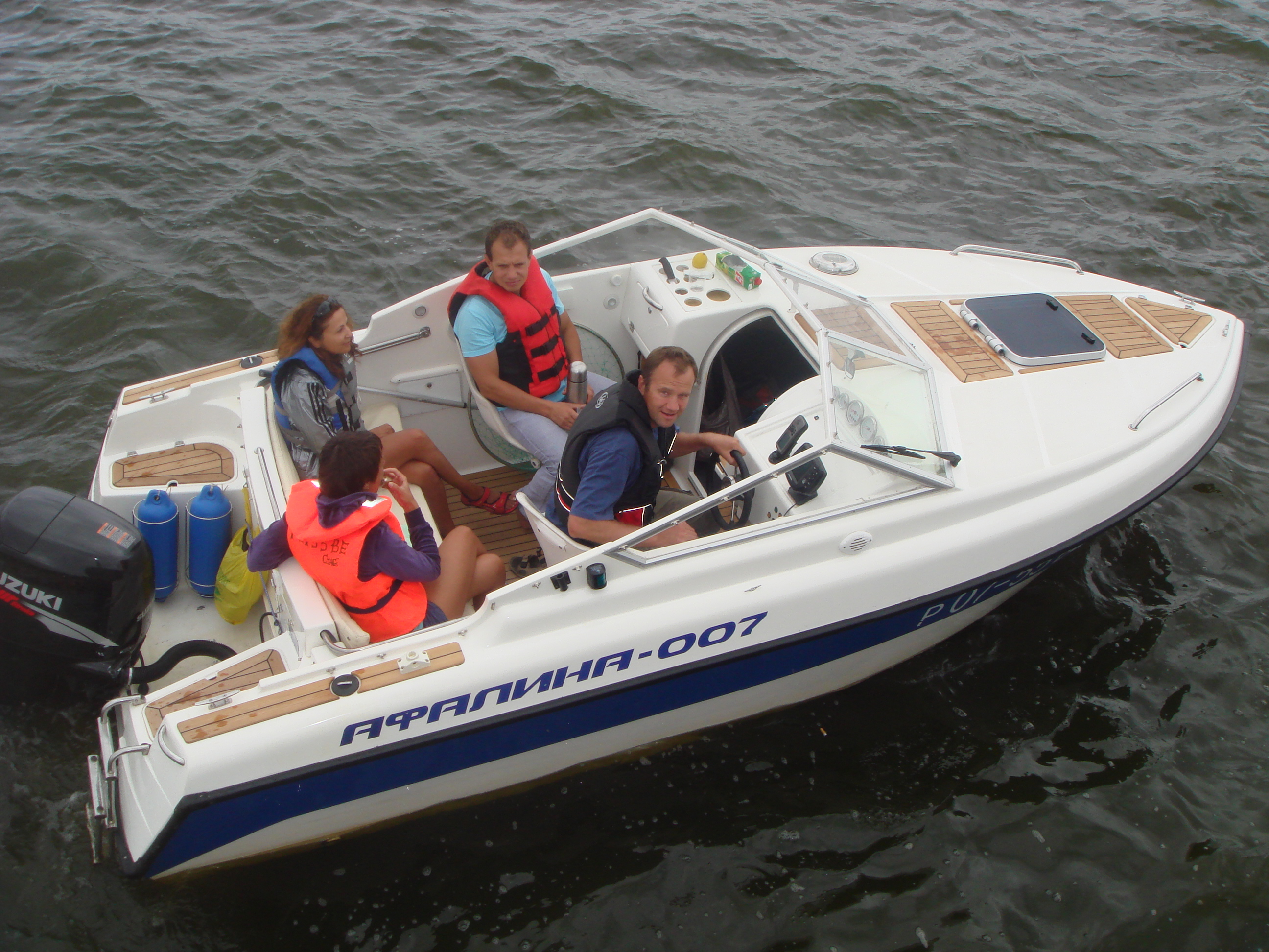 Корпус катера с обводами умеренной килеватости (16 градусов) обеспечивает мягкий ход на волне и хорошую остойчивость на стоянке. Использование импортных материалов ведущих мировых производителей для изготовления корпуса и комплектующих для снабжения гарантирует высокое качество и удобство в эксплуатации катера. В носовой части катера расположена каюта с V - образным диваном, съемным столиком и прозрачным люком. Для ночлега диван превращается в сплошную лежанку на 3 человек. За столом в каюте умещаются 5 человек. В кормовой половине катера размещается самоотливной кокпит с двумя вращающимися креслами и кормовым диваном. Под крышкой дивана имеется объемистый рундук. Откидная часть спинки кормового дивана служит кожухом для ходового тента, свернутого на дугах. Для обеспечения непотопляемости катера внутри корпуса размещены блоки пенопласта общим объемом 900 л. Объем блоков плавучести распределен по корпусу таким образом, чтобы затопленный катер сохранял положение "на ровном киле".