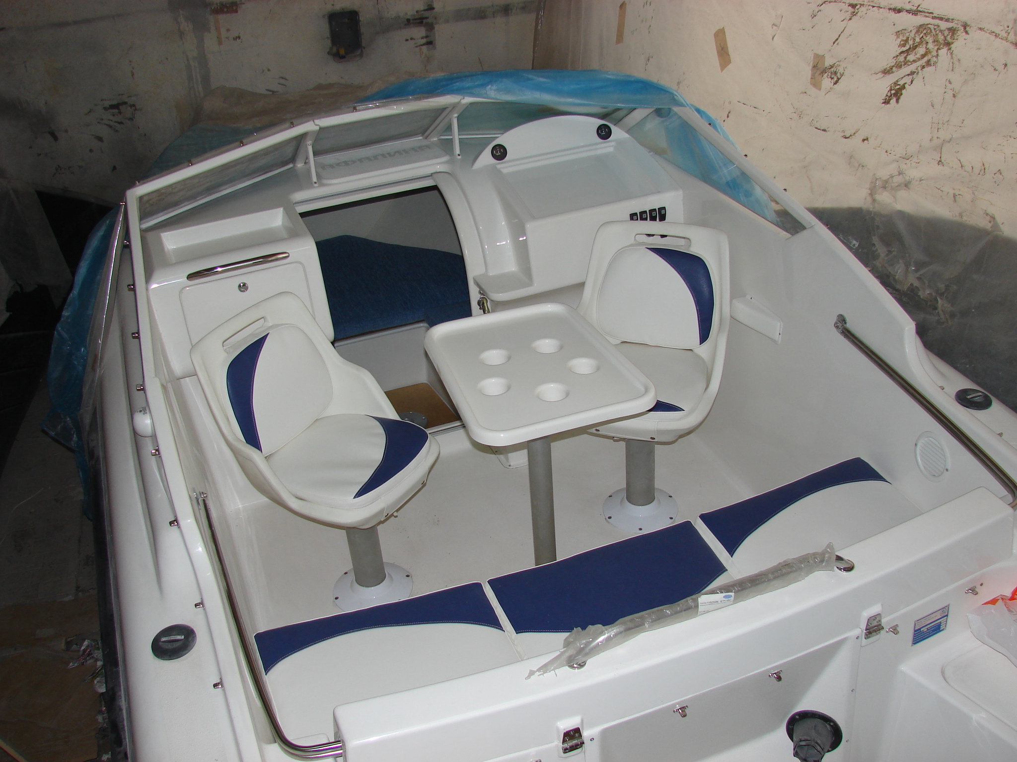 СТАНДАРТНАЯ КОМПЛЕКТАЦИЯ: 2 встроенных топливных бака по 70 литров транспортировочный тент ходовые огни огонь клотиковый стояночный звуковой сигнал столик в каюте мягкие подушки в каюте и кокпите кресло, регулируемое, рулевого и пассажира выключатель массы каютный светильник утка нерж. 4 шт ящик для мелочей люк мягкая отделка каюты панель приборов с выключателями на электрооборудование рым нержавейка 2 шт стеклоочиститель поручни на носу и корме ручка нерж. для пассажира калитка в ветровом стекле для выхода на палубу самоотливной якорный отсек самоотливной кокпит зеркало в каюте прикуриватель