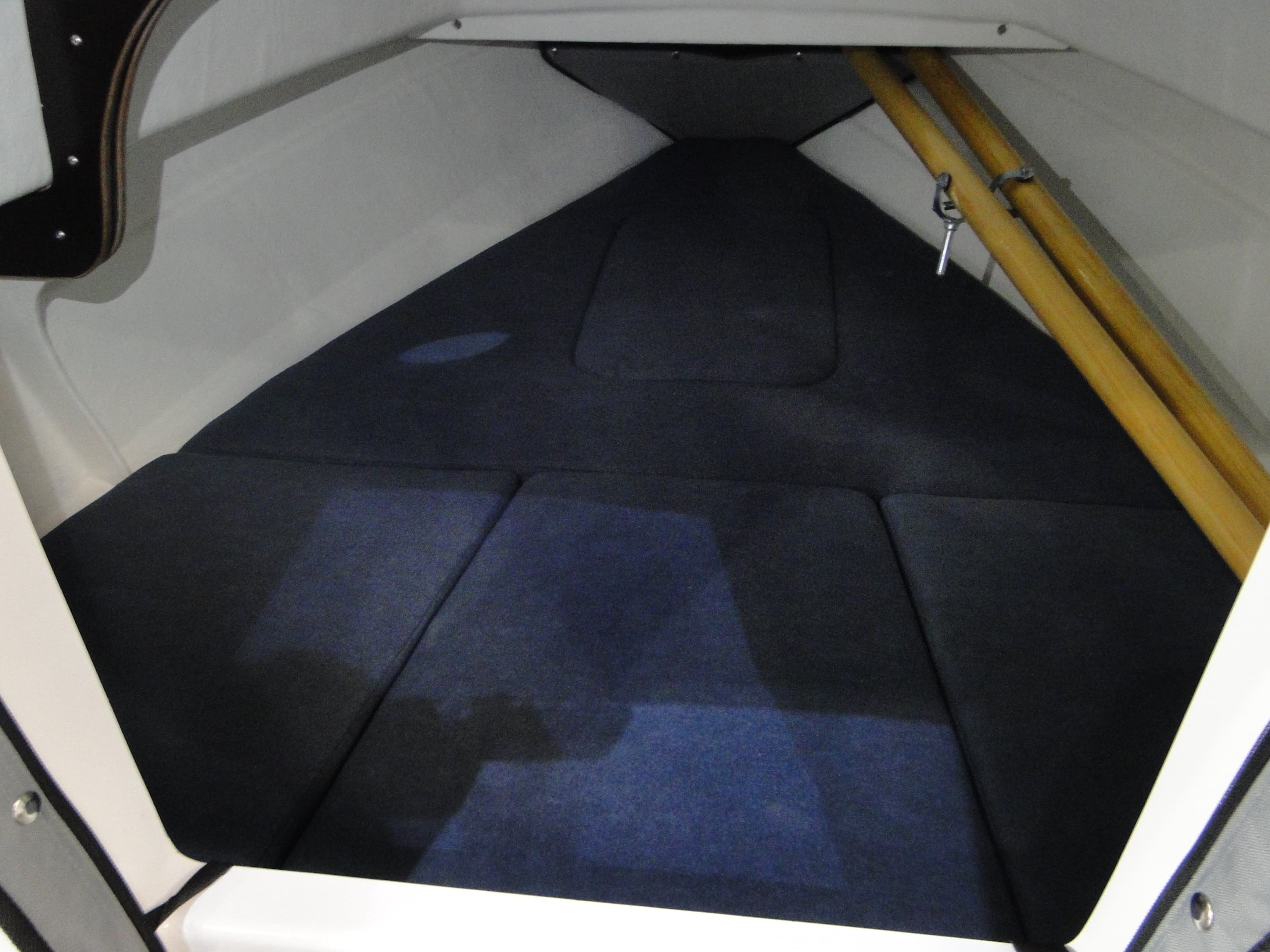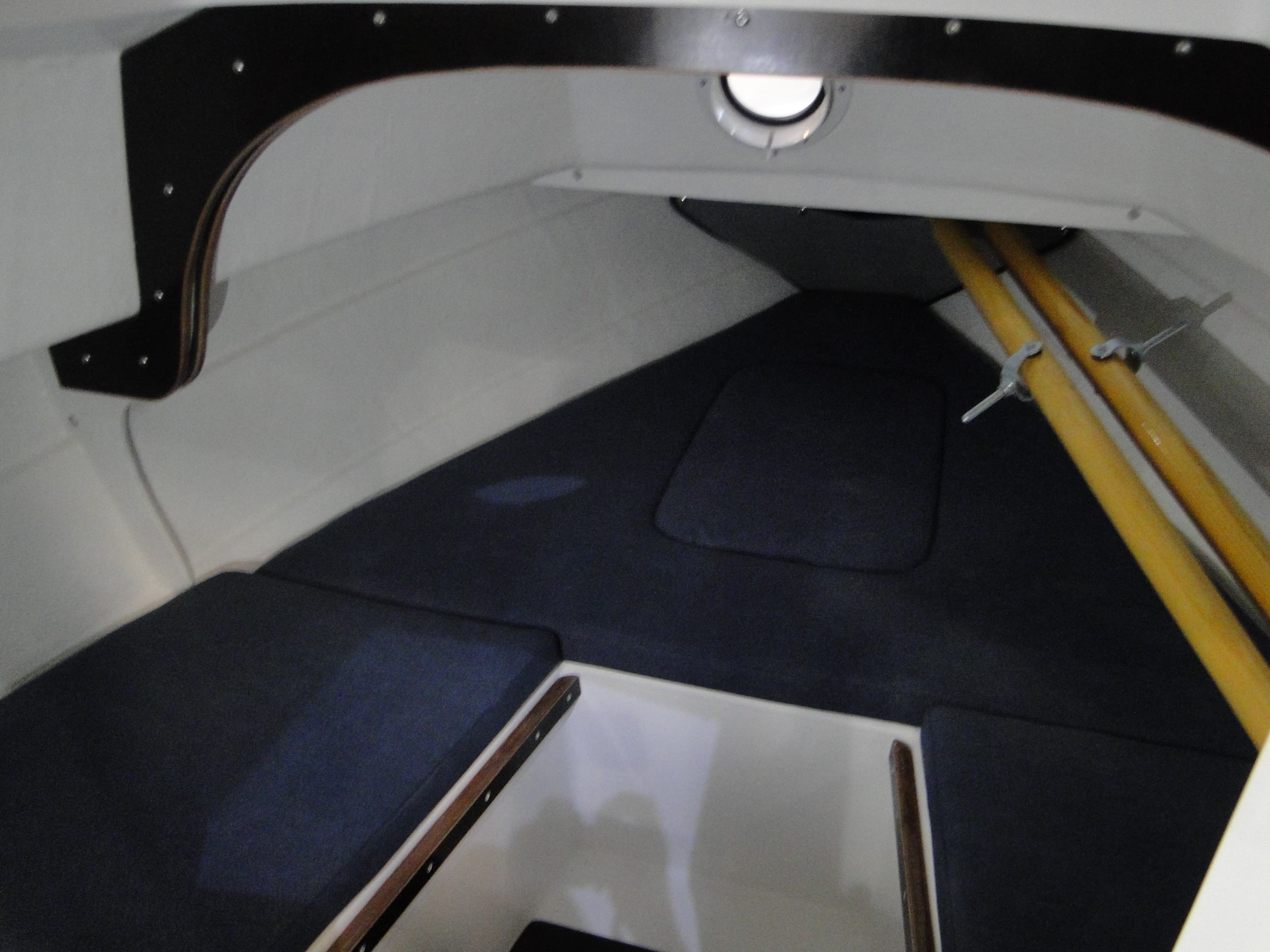 Оснащение: Кормовой рундук с герметичным люком, рундук в каюте с герметичным люком, бушприт, носовой иллюминатор рубки, поворотно-подъёмный шверт, рулевое устройство. Проводка гика-шкота центральная с балеринкой на нижнем конце. Удлинитель румпеля. Транец под ПЛМ. Весла. Матрасы в каюте.